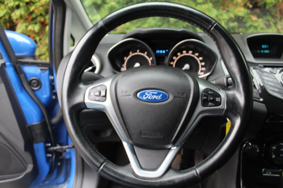 Zoals u mag verwachten van deze Ford Fiesta is hij uitgerust met een reeks aan actieve veiligheidssystemen. Stoppen en stilstaan op een helling wordt een fluitje van een cent dankzij de hill hold control. Bij een noodstop gebeurt er heel veel tegelijk: gas los, rempedaal in, kijken, sturen. Dan is het een veilig gevoel dat de Brake Assist uw remactie tot het maximum oppept.