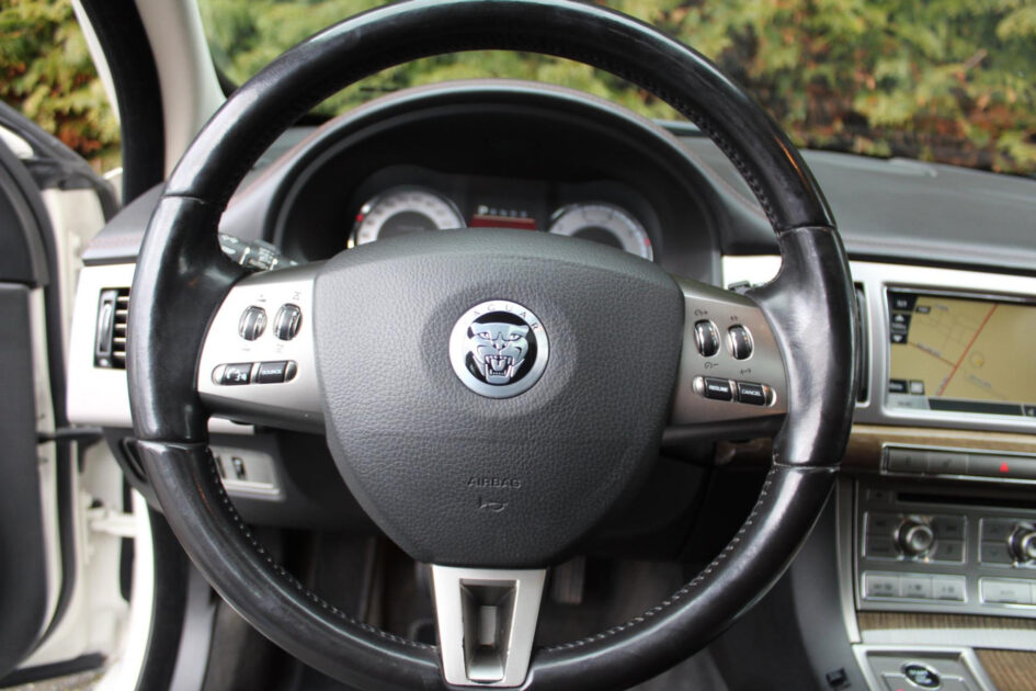 Nooit meer parkeerschade dankzij de achteruitrijcamera. Onderweg kunt u veilig genieten van het audio-installatiesysteem en het navigatiesysteem. Want in deze Jaguar bedient u ze vanaf het stuurwiel. De electronic climate control zorgt voor een prettige binnentemperatuur. Natuurlijk is er ook cruise control aan boord, waarmee u meer ontspannen en zuiniger rijdt. De sloten worden automatisch ontgrendeld dankzij de keyless entry. Fijne optie! Wat u ook in deze auto kunt vinden zijn automatisch dimmende buitenspiegels, lederen stuur en boordcomputer.